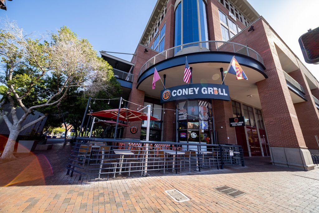 The Tempe Detroit Coney Grill project consisted of a 2,400 SF full scale tenant improvement converting an existing restaurant space into the popular Detroit Coney Grill. The site is located at The Brickhouse on the bustling Mill Avenue in Tempe, Arizona and is within walking distance to the ASU campus. The blueprints for this design were created by the commercial architecture firm Ross Design Group and executed with an elevated attention to detail.